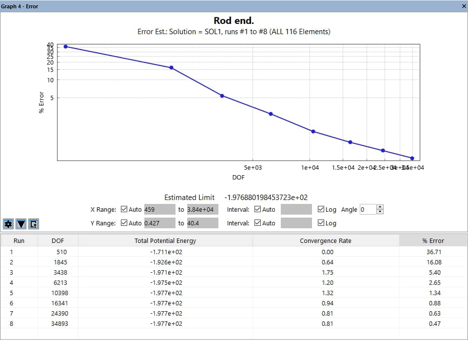 A graph pane will appear summarizing the Run, DOF, Total Potential Energy, Convergence Rate, and Error % (Figure 2):