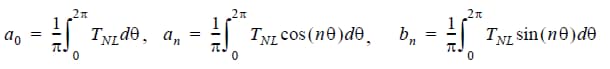 where TR is an approximation of TNL, θ is the angle measured from a polar coordinate system located at the center of the hole, and the coefficients an and bn are computed from: