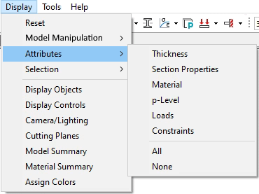 The Display > Attributes menu (Figure 2) contains options for displaying various model attributes in the graphic display area such as loads or constraints, etc.