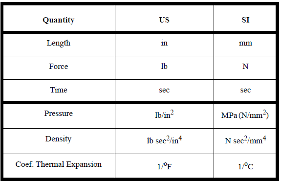 The material properties provided in the material database are given in the units indicated in the table below: