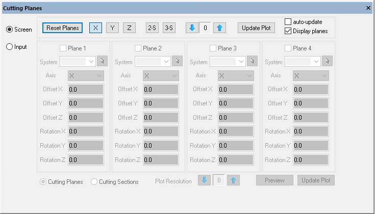 Display > Cutting Planes provides the ability to introduce a cutting plane into any model that contains a 3D solid geometric object, a 3D solid mesh or a 3D deformed shape/fringe contour plot (Figure 6). A complete description is given in the Cutting Planes Overview.