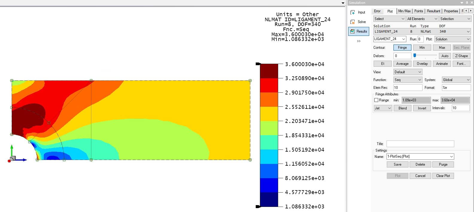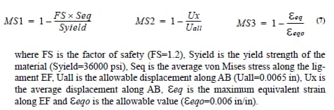 For example, for the margin criterion Disp, the solution record is DISP_25, since it took 25 load steps to exceed this margin. The Figure 6 shows the von Mises stress distribution corresponding to LIGAMENT_24: