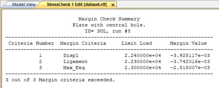 In the following, we refer to PlateHole.scw (found in the Tutorial Handbook folder) to demonstrate the Margin Check solver.