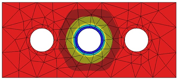 The Cold Working Solver is perfect for a quick assessment of the 2D residual stresses after cold working a single hole via mandrel insertion/removal. The modeling requirements are minimal from the analyst, with the cold work process integrated within the Cold Working Solver. All that is specified by the user is which hole is cold worked, the definition of an elastic-plastic material, the mandrel material properties and the mandrel interference.