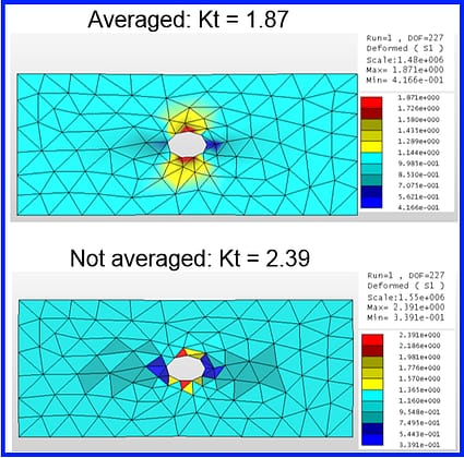 Averaged vs. Not Averaged results for Legacy FEA Simulation Technology. Which stress concentration (Kt) is more accurate, if either one? Is this the right mesh density?
