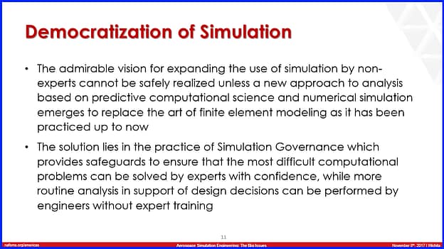 Excerpt from “The Role of Simulation Governance in the Democratization of Simulation Through Sim Apps in the A&D Industry” presented by ESRD’s CEO Dr. Ricardo Actis at NAFEMS 2017 Aerospace Simulation Engineering: The Big Issues