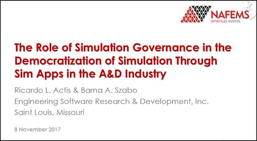 The concept of simulation governance when used within the context of mechanical and structural engineering was introduced in 2012 when Dr. Barna Szabo and Dr. Ricardo Actis of Engineering Software Research & Development (ESRD) published the first reference to and definition of the term. This paper was titled ‘Simulation Governance: Technical requirements for mechanical design’, and is available for download via ScienceDirect. Recently, in 2016, the authors expanded upon this paper with a NAFEMS webinar titled “Simulation Governance: Technical Requirements”.