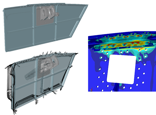 With the use of StressCheck, the results of FEA-based structural analysis are far less dependent on the user expertise, modeling approximations, or mesh details. High-fidelity stress analysis of complex 3D solid model geometries, with numerous joints and fastener connections typical of aero-structures may be obtained in less time, with reduced complexity and greater confidence.