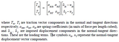 Specifically, the traction vector components in the normal-tangent reference frame, for example, are dependent on the imposed spring displacements:
