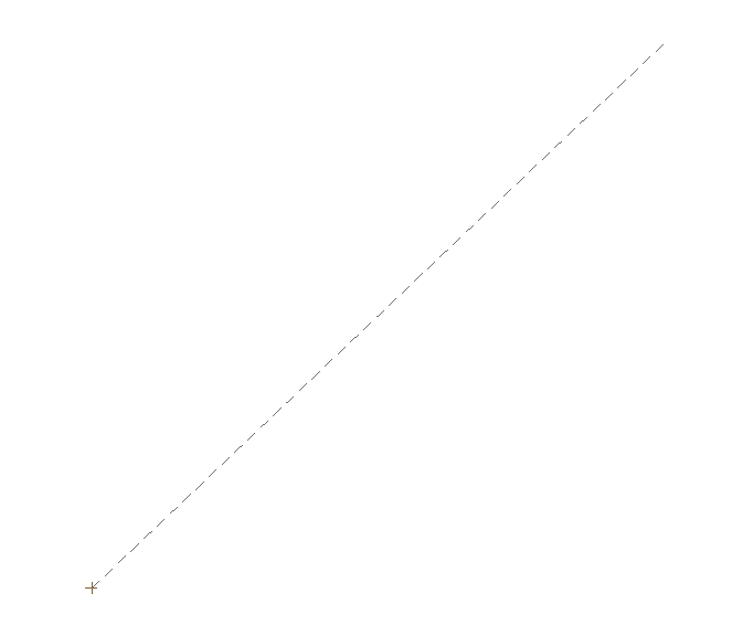 Note that a Point appears at the starting point so that it is possible to determine at a glance the direction of the line. Note also that curves and surfaces will appear dashed by default when element objects are enabled for display. This is so that if an element edge overlaps a curve, it will be possible to see the element edge showing between the dashes of the curve. If you wish to visualize curves as solid lines, you must disable elements from the Model View using the View > Display Objects Toolbar > Display elements. Lines are parameterized with a single parameter in the range 0.0 ≤P1 ≤ 1.0. This makes it easy to associate other objects with a line.