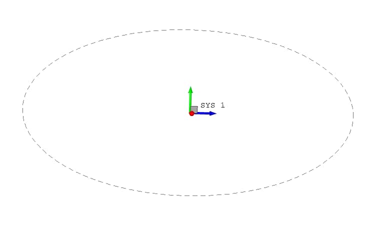 - 3-Pt Circle(CRP): A circle may also be defined by the 3-Pt CRP (center, radius, point) method. In this case, the first point represents the center of the circle, the second point established the radius of the circle and the direction of the local x axis, and the third point establishes the plane in which the circle lies. The circle is a complete 360 degree circle.