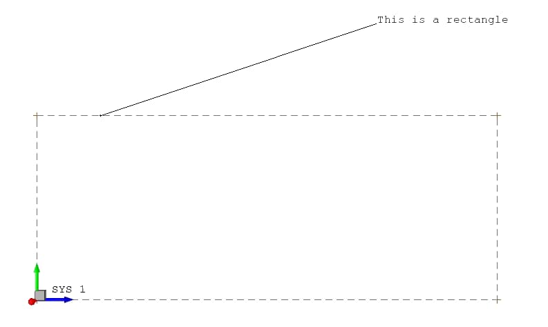 The rectangle object is not a true independent object. It is actually composed of four line objects which are associated with four point objects, which are attached to a local system object. The rectangle object is provided as a convenient tool for constructing a rectangular shape. It may be defined as constant or parametric, and once created, may be rotated by rotating the underlying local coordinate system. See Figure 13 for an illustration of a rectangle object definition.