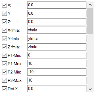 The formula surface object is parameterized as follows: P1-Min ≤ P1 ≤ P1-Max, P2-Min ≤ P2 ≤ P2-Max.
