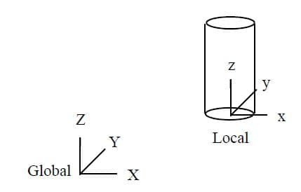 Another common editing operation performed on 3D surfaces is to change the orientation of the surface. By default all system based surfaces and solids, such as planes, spheres, cylinders, cones, and tori, are created such that the xy-plane of the local system associated with the surface is parallel to the XY-plane of the global coordinate system when the XYZ rotation angles are zero. This condition is illustrated in Figure 3.