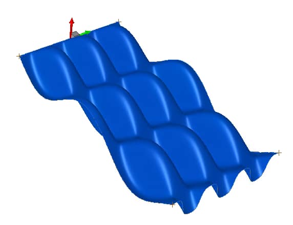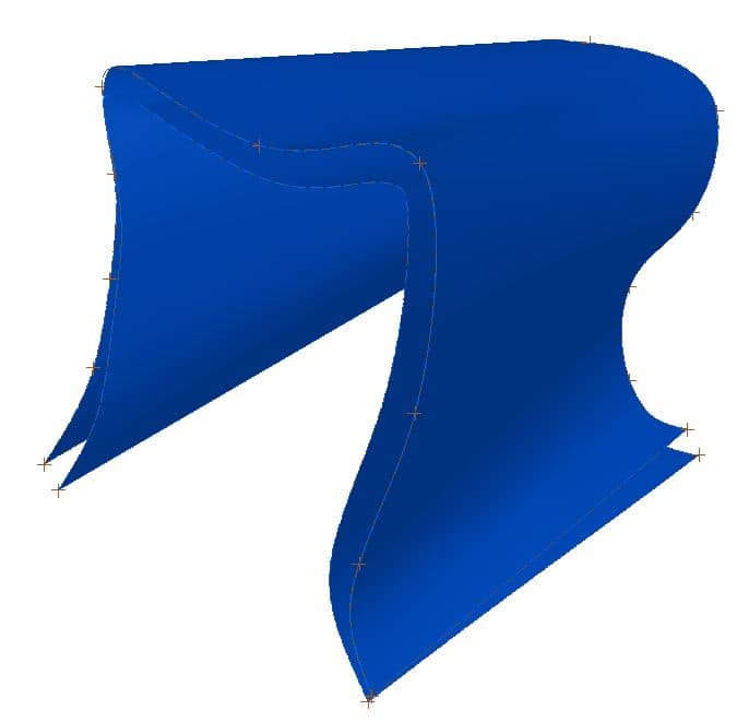 - Offset: Use the “Offset” method (Create > Spline > Offset) to construct a spline surface which is at a fixed distance from a reference surface. A series of sample points, the number of which is specified as an input value (Res:), is computed on the reference surface. The computed construction points are then used to construct the new spline surface. The resulting spline surface maintains an associative relationship with the reference surface. The offset value may be parametric.