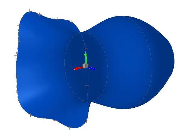 An offset surface is defined as a replica of a 3D surface which has been offset from the original surface. Each point on the new offset surface is located at the specified distance from a corresponding point on the base surface, in the direction of the normal vector at each point. Note: the surface normal may be displayed at any location on the surface by using Check > Any Surface > Offset.
