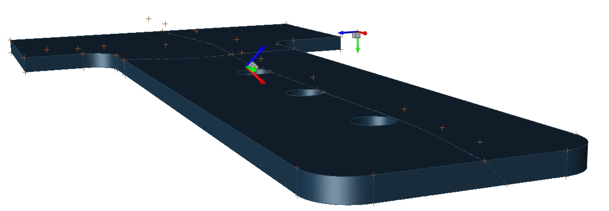 To perform the copy, select the body and a reference system (they will both highlight red). The reference system is needed in order to identify a reference location in the body and the orientation of the parent body. Then, you may supply the location and orientation of the copy using the input fields. Alternatively, if you hold Ctrl + Shift and select an existing local system (other than the previously selected reference system, it will highlight green) the copy will be attached to the second system and the input field values will be relative to the second local system. Finally, click Accept or hit the Enter key to create the copy.