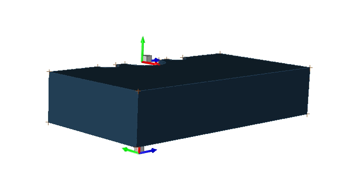 Select the face(s) of a solid body that you wish to extrude (red highlight), provide the length of extrusion (Dist:), and click Accept or hit the Enter key. By default, the extrusion is performed in the direction of the positive Z-axis of the global system. To select a local system, hold the Ctrl + Shift keys while picking a local system object in the Model View.