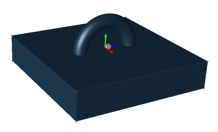 The Bool-Subtract (boolean subtraction) method is used to create a new solid body by performing a subtraction between two or more intersecting solid bodies. There can only be one target (several tool objects are possible) object for a boolean subtraction operation. Simply select the target solid body (which will highlight green), then the tool solid body (or bodies, which will highlight red), and click Accept or hit the Enter key. Note: the target solid body is the solid body expected to remain after the boolean subtraction operation.