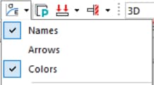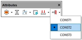 - Clicking the down arrow of the Display Constraints icon allows the user to draw the constraint attribute symbols for any constraint ID. Note: if no constraint ID exists, then the constraint ID drop down will display “(None)”.