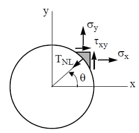 where TR is an approximation of TNL, θ is the angle measured from a polar coordinate system located at the center of the hole, and the coefficients an and bn are computed from: