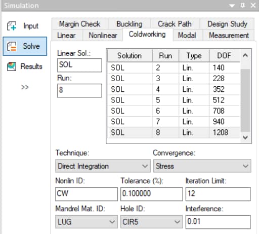 Select the Convergence option (Stress is recommended for Coldworking) and the allowable tolerance (1% or less).