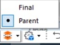 - The Display Mesh Layers icon, only applicable for hand (manually) meshed elements, enables/disables the display of Parent (original), Final (after h-discretization/laminate stack assignment), or other intermediate mesh layers (Figure 2). Note: model attributes, such as loads and constraints, may only be assigned to parent elements.