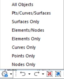 - Clicking the down arrow of the Display Objects icon (Figure 3) allows the user to draw specific object types (e.g. Points Only, Nodes Only, etc.) or all object types (All Objects).