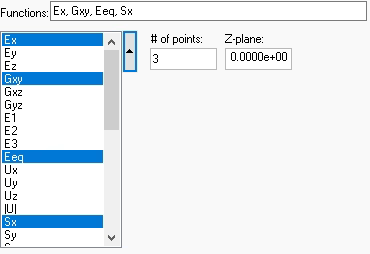 Select one or more standard engineering functions (e.g. Sx, Ey), or the formula (“Fmla”) or calculator (“Calc”) options, from the “Functions:” list (Figure 3). To select more than one function name, or to cancel the selection of a function name, hold Ctrl while left clicking on the function name.