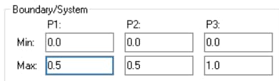 - If the selected boundary is a surface, the initial and final range of each parameter will define an extraction grid in the parameter space of the surface. The third parameter range (“P3-Min”, “P3-Max”) only applies to object “System”.