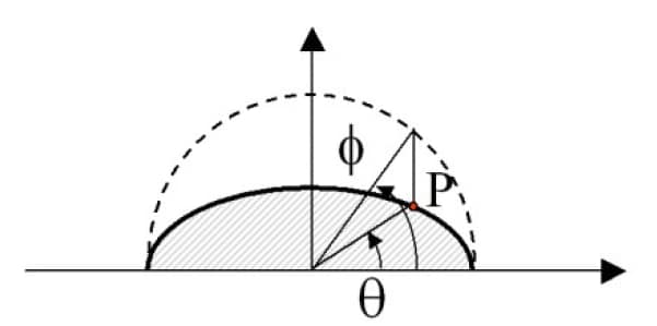 - If the selected edge lies on an ellipse, then the parametric angle of the ellipse (φ) is computed in the local system of the ellipse, regardless of the system selected.