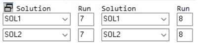 It is possible to compute point-wise values for different Solution ID’s. This is useful if you want to compare linear with nonlinear, or solutions having different boundary conditions. To activate multiple solution computation, select the multi-solution button near the upper left corner of the Results interface . The solution selection controls will change so that you may choose up to four different Solution ID’s and corresponding Run numbers (Figure 2):