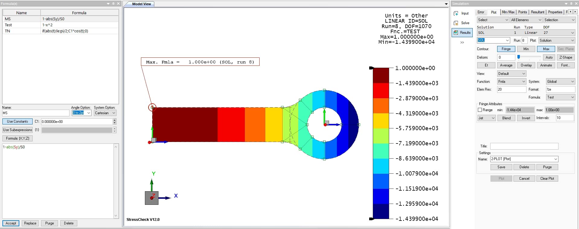 For an example of plotting formulae fringes, refer to StressCheck Tutorial: Plotting Formulae Fringes.