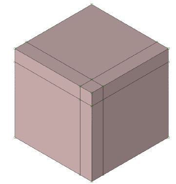 To perform a simple graded refinement with one layer of elements at a node, choose Select > Node > Simple Graded > Name: Test, Layer: 1, Midsides: 1 > Grading: 0.15 and pick the node(s) to refine and click Accept. Graded refinement may be applied to a node, curve, edge, surface or face (3D only), and may be performed as described above. Figure 3a, 3b and 3c illustrate the effect of applying a grading factor of 0.15 to a node, an edge, or a face of a hexahedral element: