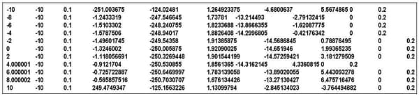 - An ASCII text file must be created containing the displacements and rotations together with their corresponding locations and excluding repeated information. This can be accomplished by cutting and pasting the data from the excel file into Notepad and then deleting the repeated records. In Figure 3 the first three columns are the global coordinates of the points, the next three are the translations (Tx, Ty and Tz), and the last three are the rotations (Rx, Ry, and Rz).