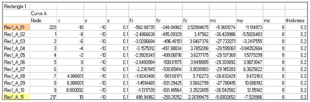 - An ASCII text file containing the forces and moments per unit length, together with their corresponding location plus the plate thickness must be created excluding repeated information (Figure 6).