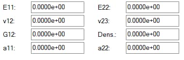 - E11, E22, E33 (Elastic/Young’s Modulus along each axis)