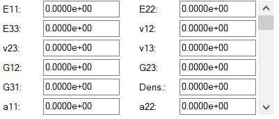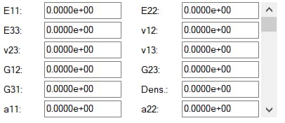 - v12, v23, v13 (Poisson’s Ratio in each plane)