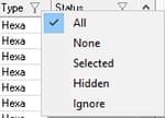 - The filter options are All, None, Selected, Hidden and Ignore: