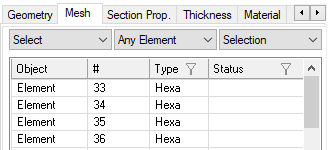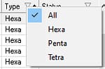 - For example, if the Object combo is set to “Any Element” and the mesh contains Hexa, Penta and Tetra elements, the following filter option list would display on right-click: