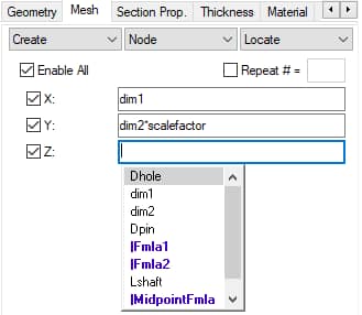 Simply enter the parameter name, or an expression containing constants and parameter names, in the input field. Parameter autofill and validation check features are available as of StressCheck v12.0 to assist in parameter selection. For example, if there is a parametric model dimension (e.g. “dim1”) to be modified by a parametric scale factor (e.g. “scalefactor”), an expression can be written in the input field as “dim1*scalefactor”. Changing the “scalefactor” parameter value will result in an automatic model update, including a re-mesh if necessary.