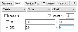 When node objects are to be created at regular intervals (i.e. repeated), it can be helpful to make use of the Repeat function in the Input dialog (Repeat # =, as shown in Figure 7):