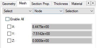 Only the coordinate or dimension values selected for manual entry will be affected during the Replace or Move operation. For example, if you select 5 different global nodes, then turn on only the X: coordinate input toggle and enter a new value, a Replace operation will assign the same X coordinate to all nodes whereas a Move operation will translate all selected points by the magnitude of the value in the X: coordinate input field.