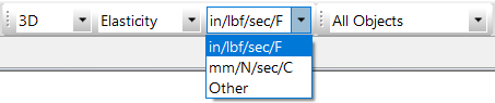 When loading in an existing StressCheck model file, the units will be assumed to be “Other” unless the StressCheck .sci, .scw or .scp file contains a specific record assigning specific units. To manually select your system of units, use the Edit > Units menu option or use the Unit selector from the Reference/Theory/Units toolbar. Note: you may change the system of units only if no geometry has yet been defined.