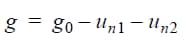 Let un1 be the normal displacement (positive if outward) at any point along the declared contact region of body 1, and un2 the corresponding normal displacement of body 2. The first step in the contact analysis is to determine the initial gap between the contacting surfaces. This is accomplished by projecting normal vectors from each control point of one contact zone to the element faces belonging to the opposite contact zone. The distance between the point and its projection determines the initial gap (g0). Therefore the gap function (g) is given by: