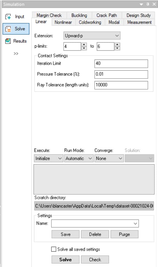 - For more information about the Contact Settings and when they should be changed, consult What Are Some Common Multi-Body Contact Issues? and StressCheck Tutorial: Multi-Body Contact Solver Options/Plot Functions.