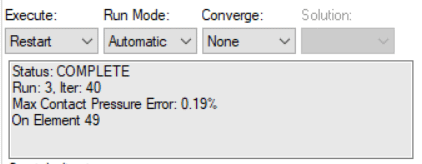 - Additionally, the element number associated with the reported error value is also displayed in the solver window. This allows the user to quickly pinpoint which region has the highest contact pressure error. This information is also recorded in the Project Log for future reference.
