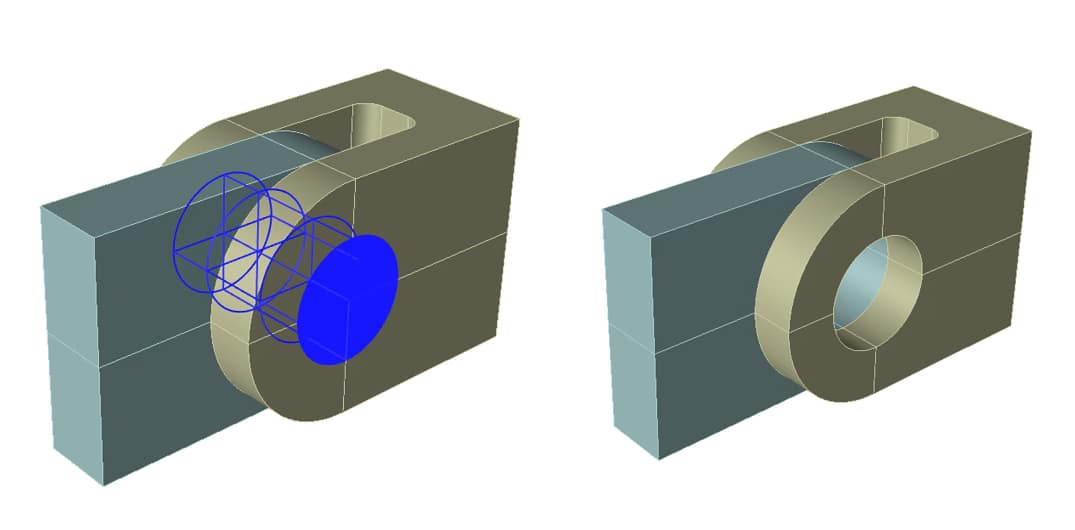 Since a bearing load requires only cylindrical surfaces be selected, it is desired to deselect the flat surface by holding the Ctrl key and left clicking on the flat surface as shown in Figure 6: