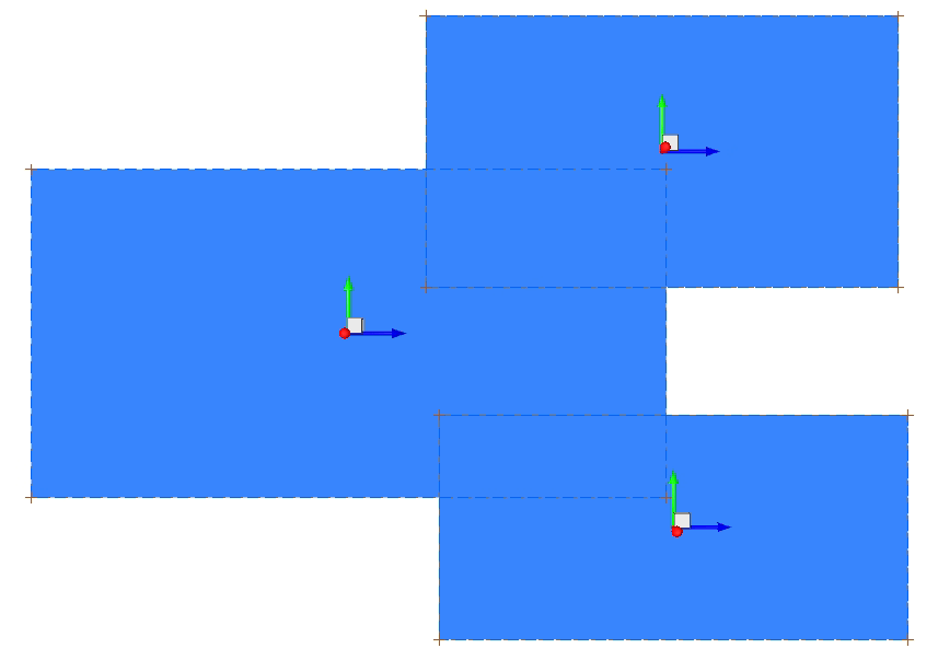 Figure 3a shows three sheet bodies before a boolean union general operation, and Figure 3b shows the result.
