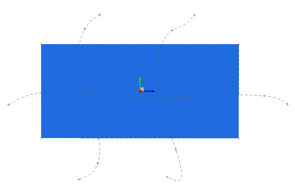 Select a curve that will be extruded to form a sheet body surface, and supply the distance to the first edge (Dist1) of the new surface and the distance to the second edge (Dist2). Select a local coordinate system (while holding the Ctrl + Shift keys) to determine the direction of the extrusion (along positive Z-axis). If no system is selected, the extrusion will be relative to the positive global Z-axis.